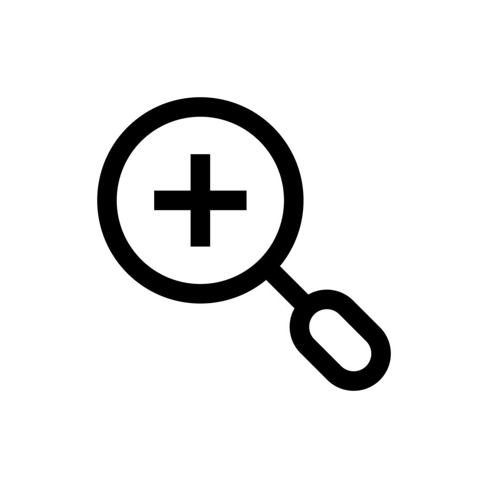 An outline icon of a magnifying glass with a plus sign, representing zoom in. vector