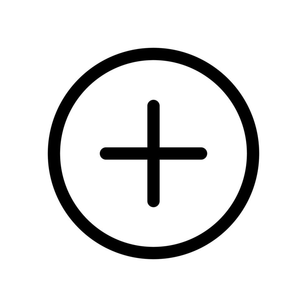 An outline symbol of a plus sign, signifying an add action or creation. vector