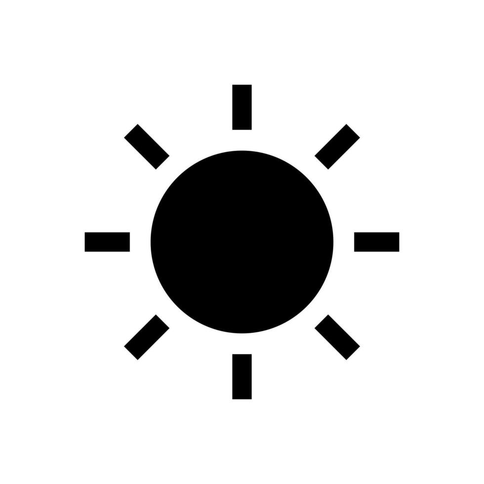A simple filled icon of the sun with rays, representing brightness or weather. vector