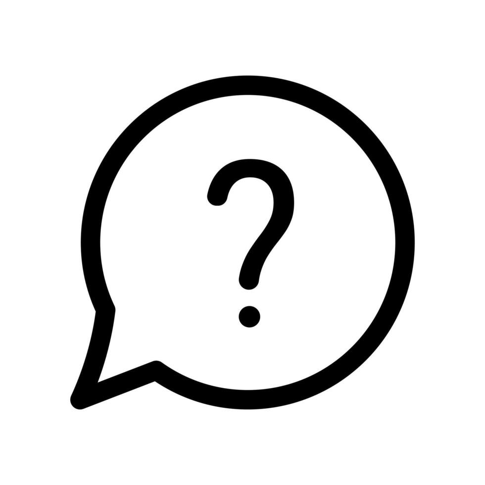 An outline icon of a speech bubble with a question mark, symbolizing a question or help needed. vector