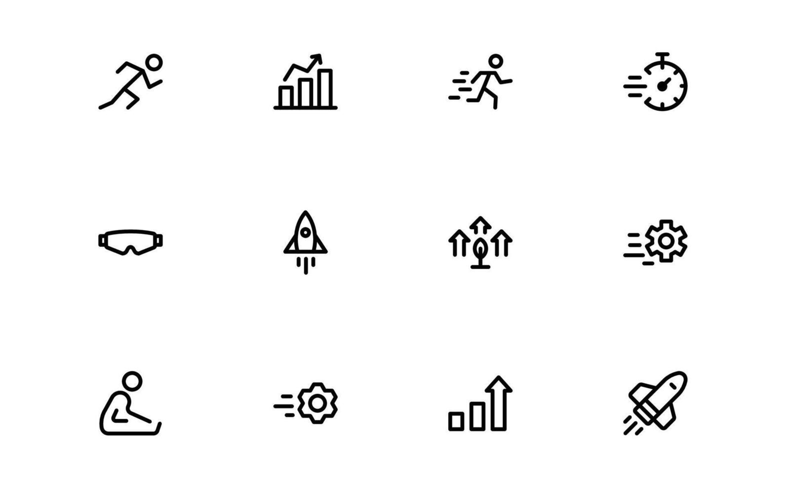 Dynamic Running and Speed Icons with Flat Minimal Outline Design for Action and Sport Pro Vector