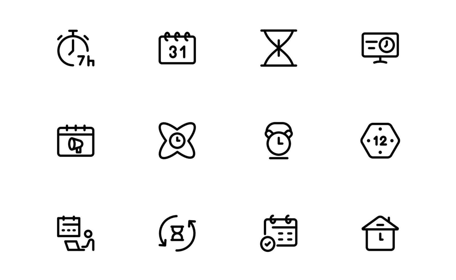 Editable Flat Minimal Time and Calendar Icons for Organization and Workflow Pro Vector