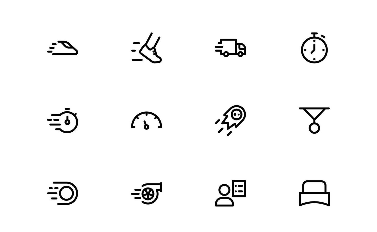 Running and Speed Icons with balanced flat design for sports motion, athlete performance, and speed monitoring illustrations in web and mobile applications. Pro Vector
