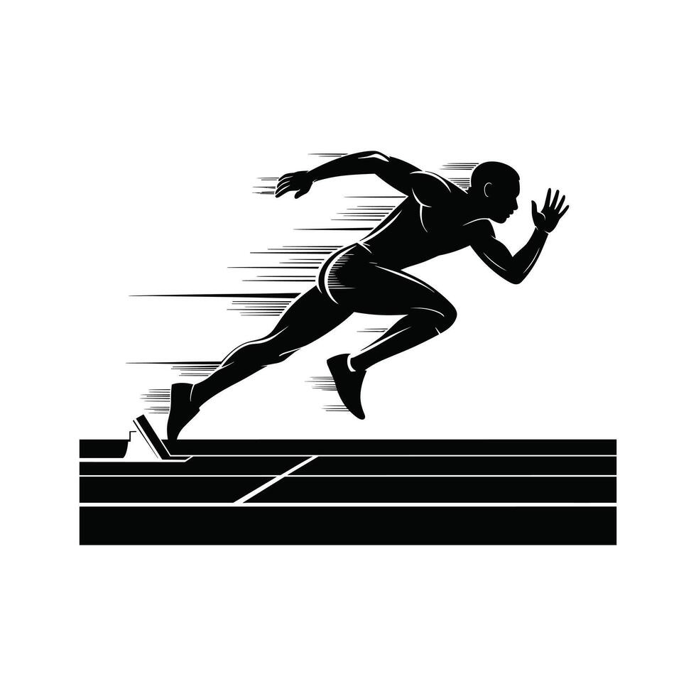 Black silhouette of a sprinter exploding from starting blocks on a track running track and field Pro Vector