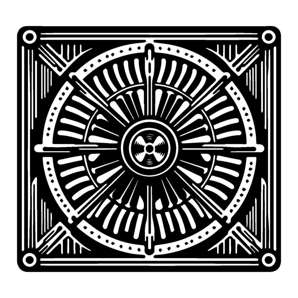 Intricate black and white design of a mechanical device. Pro Vector