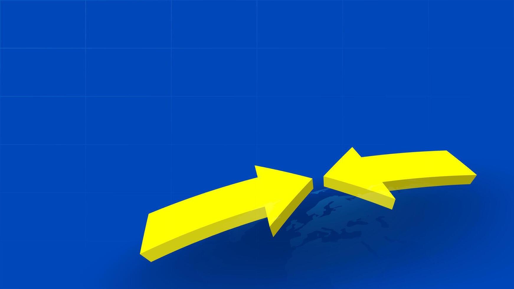 Abstract background with yellow arrows on the world map in a blue background Pro Vector