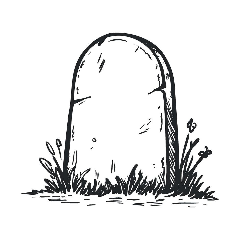 Simple gravestone with grass and small flowers in a serene setting Pro Vector