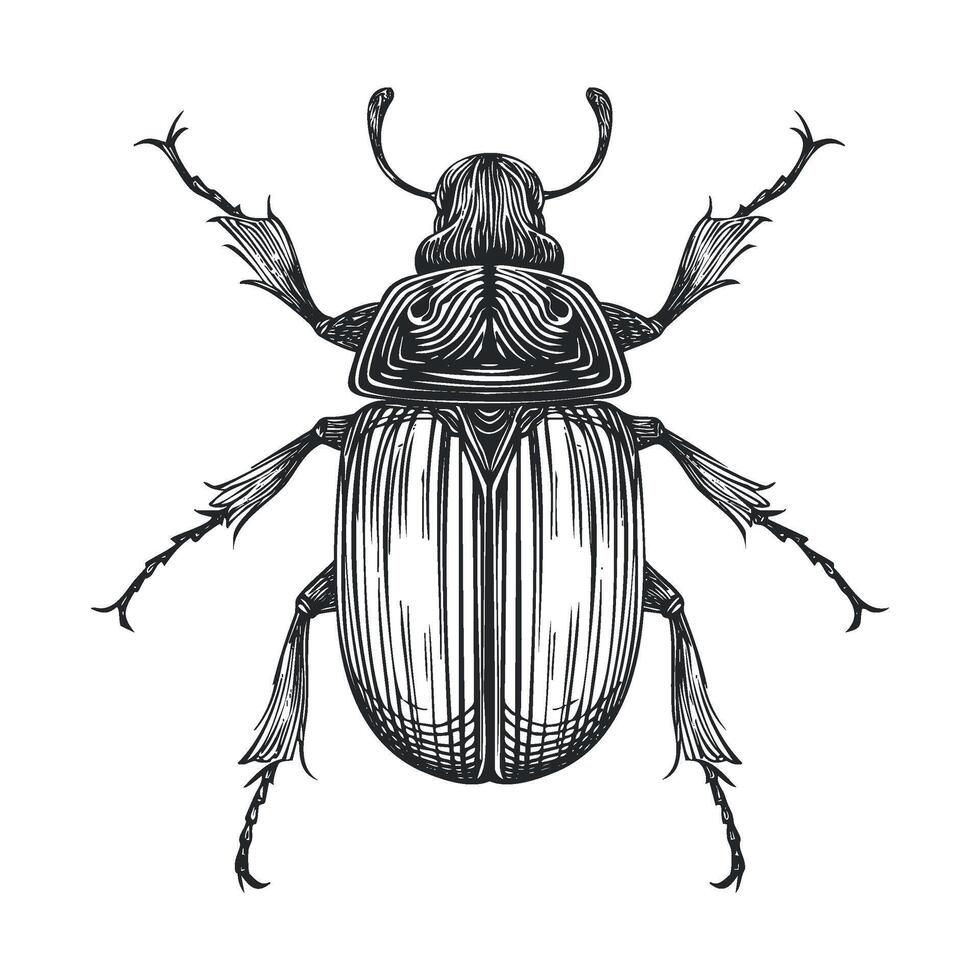 Detailed sketch of a beetle with intricate patterns and design Pro Vector