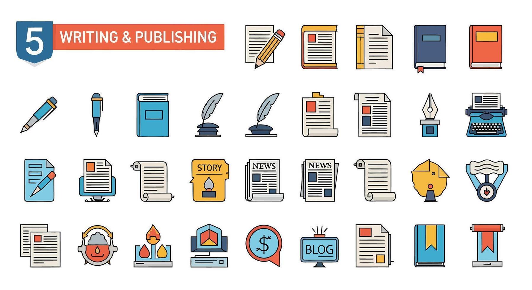 Writing and Publishing Icons Set for Content Creation, Storytelling, and Journalism Pro Vector