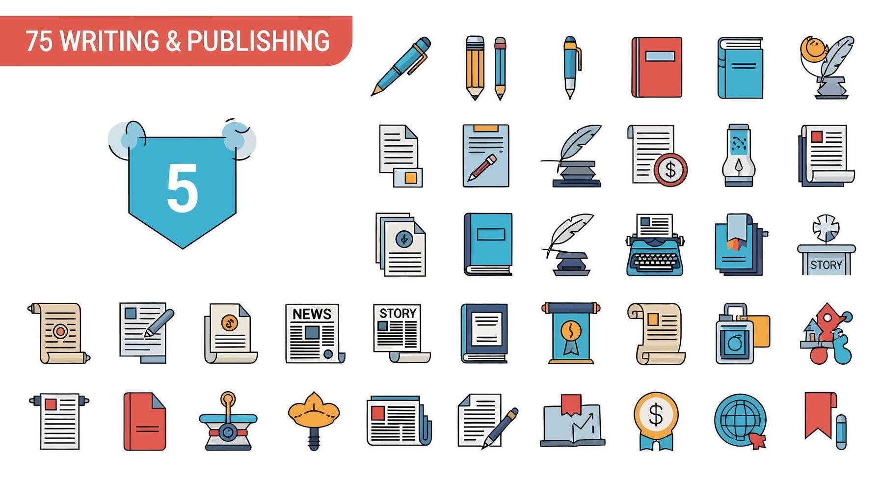 Writing and Publishing Icons Set Illustrations for Design and Content Pro Vector