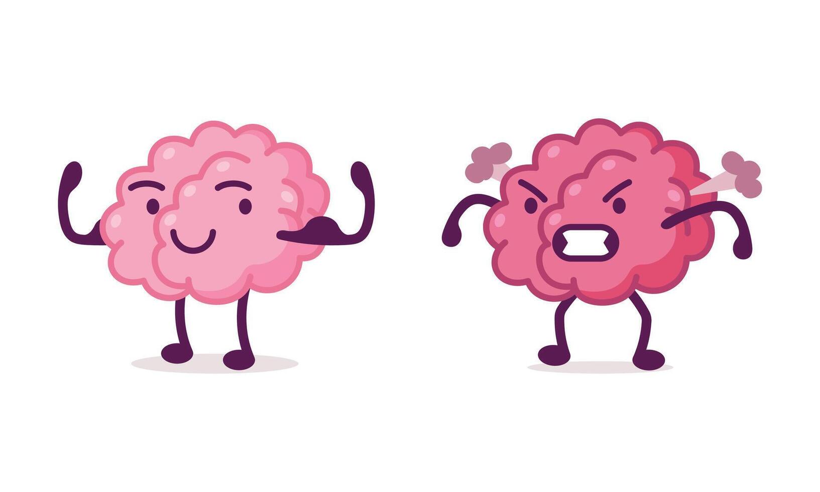 Funny Brain Character Smiling and Steaming with Anger Set Pro Vector