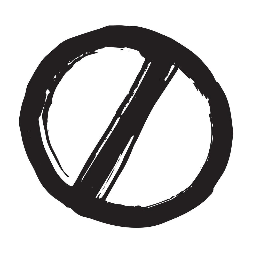 Hand drawn prohibition sign No entry symbol Black circle with cross line clipart in doodle style Ban Restriction Forbidden stop Single element for print, web, design road Pro Vector