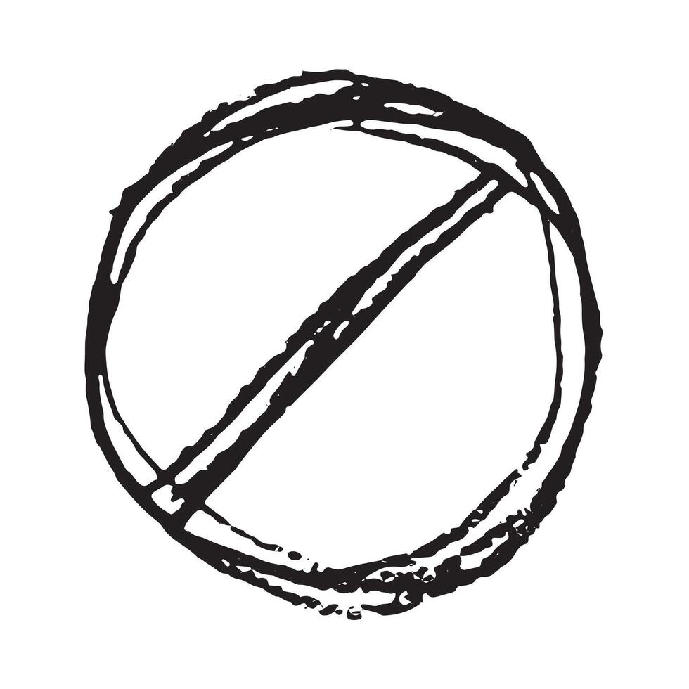 Hand drawn prohibition sign No entry symbol Black circle with cross line clipart in doodle style Ban Restriction Forbidden stop Single element for print, web, design warning Pro Vector