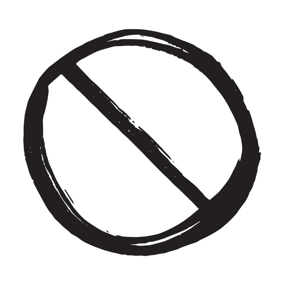 warning Hand drawn prohibition sign No entry symbol Black circle with cross line clipart in doodle style Ban Restriction Forbidden stop Single element for print, web, design Pro Vector