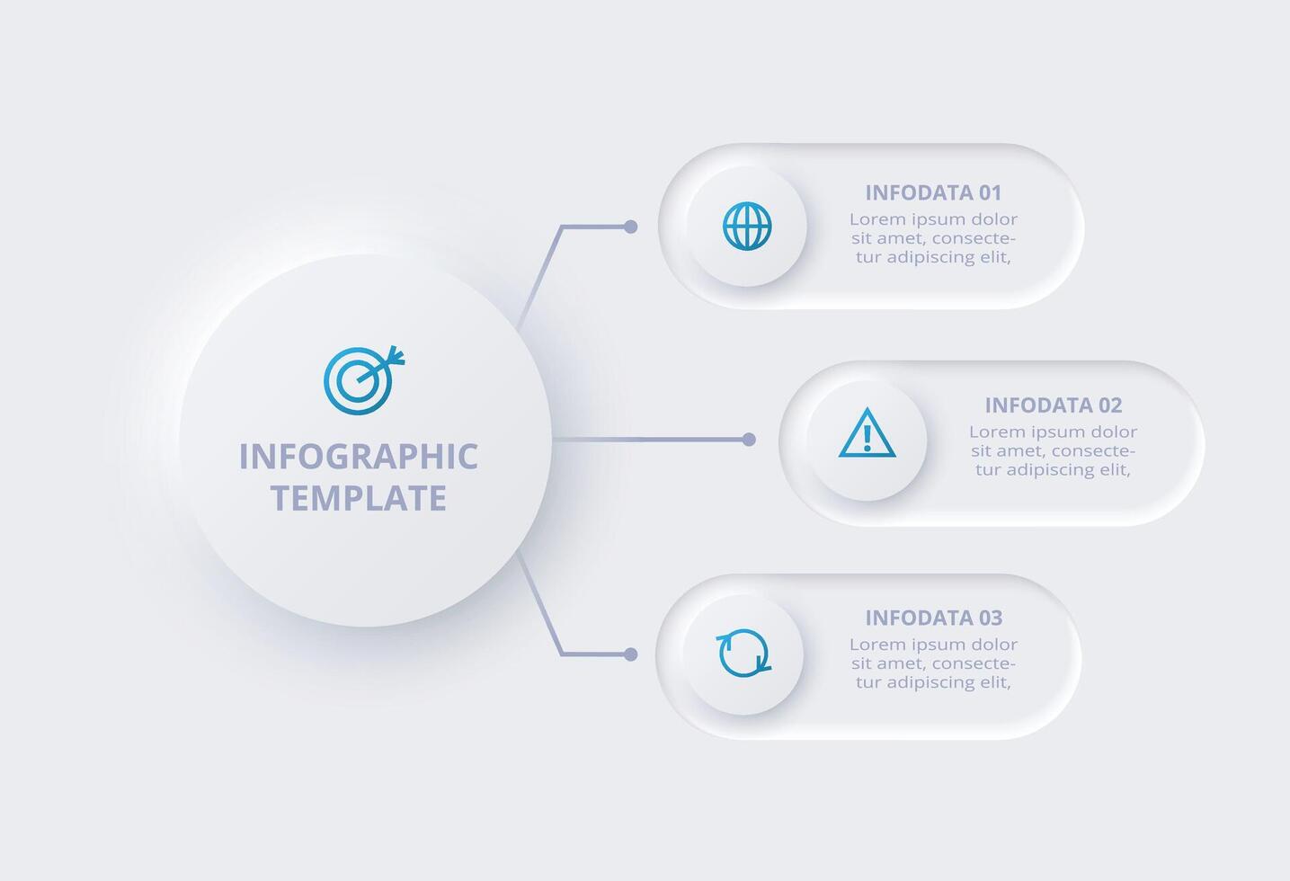 Neumorphic flowchart infographic. Creative concept for infographic with 3 steps or processes. Pro Vector