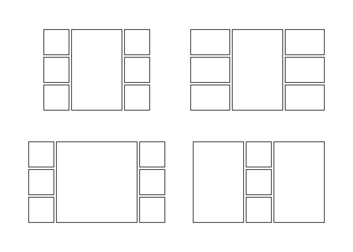 Frame collage from square and rectangle shape for photo, image template line set. Mood board layout, background Gallery grid mosaic puzzle border outline illustration Pro Vector
