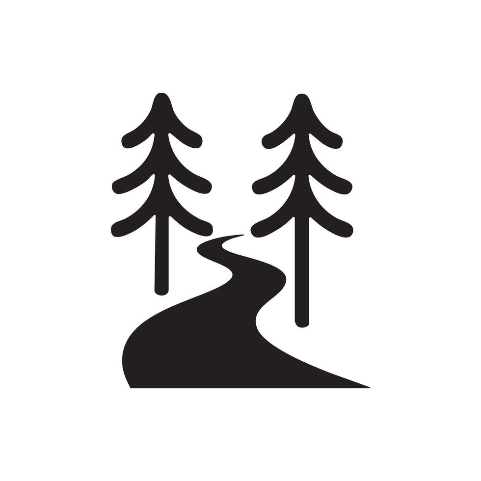Minimal Pine Tree Forest Icon with Curved Path Pro Vector