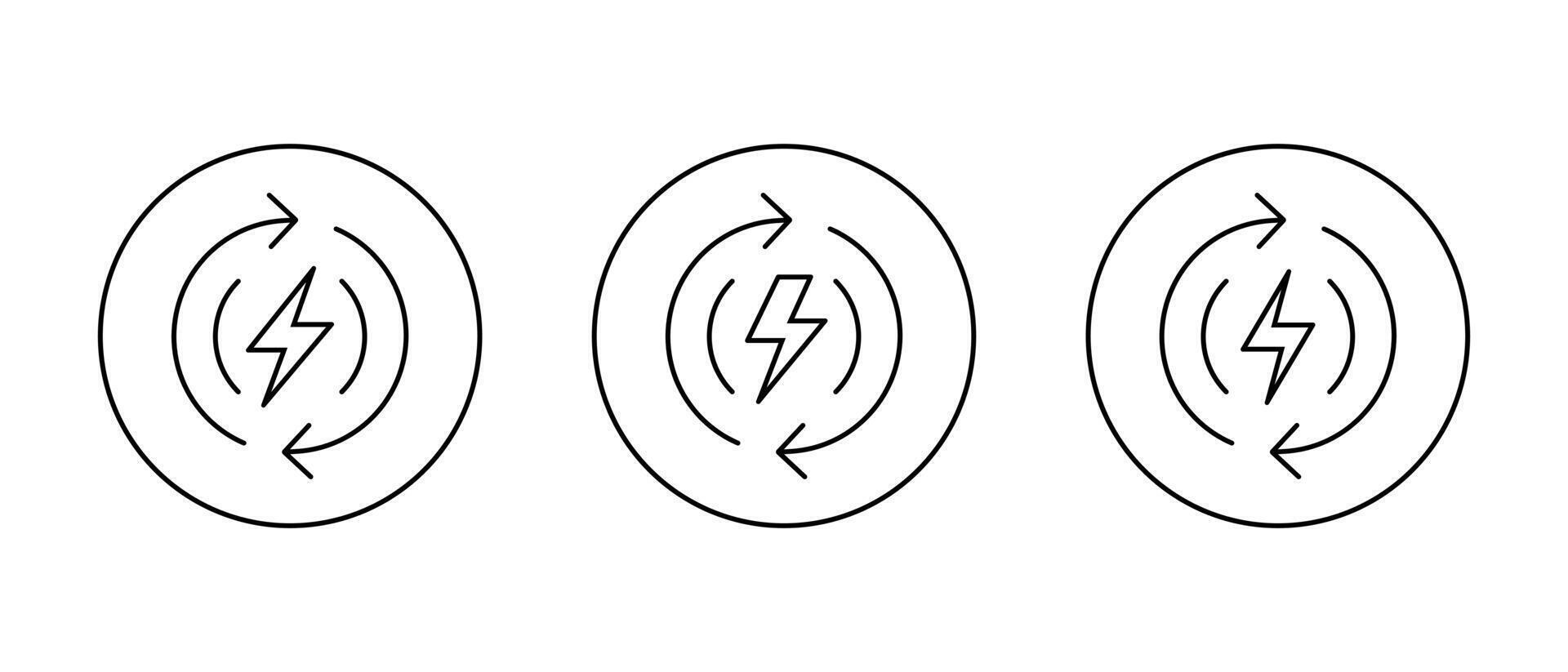 Energy loop icon set in circular outline. Power rotation and renewable electricity symbol Pro Vector