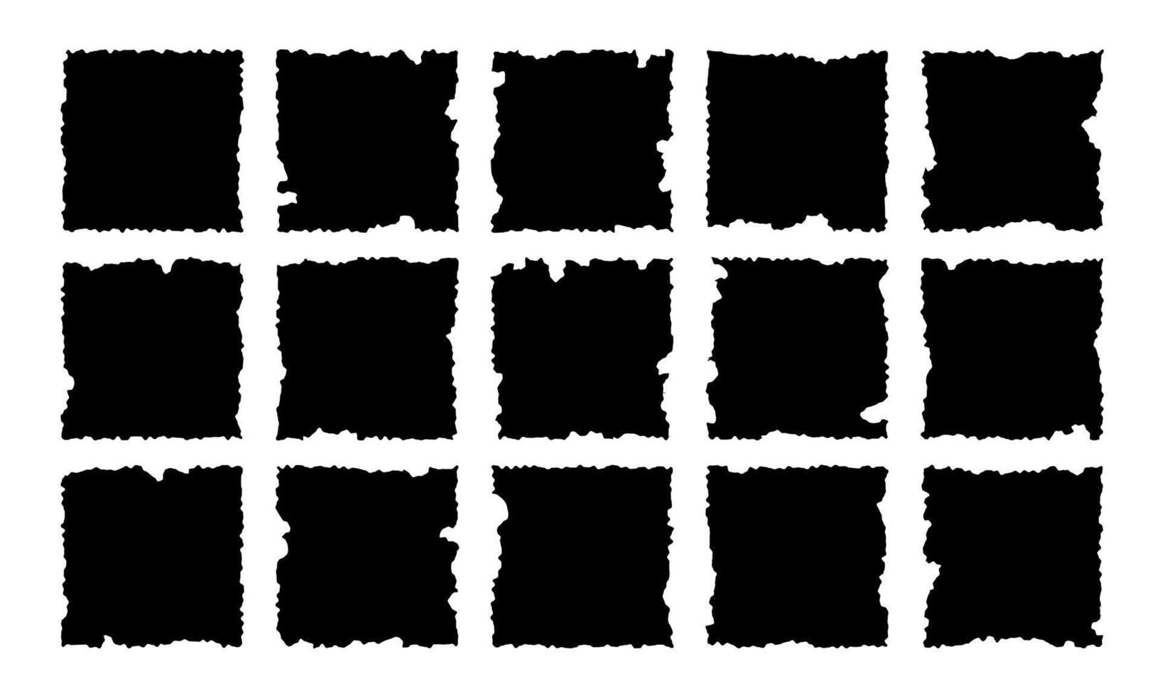 Set of jagged square with rough edge shape. Torn paper grunge frame collage Pro Vector