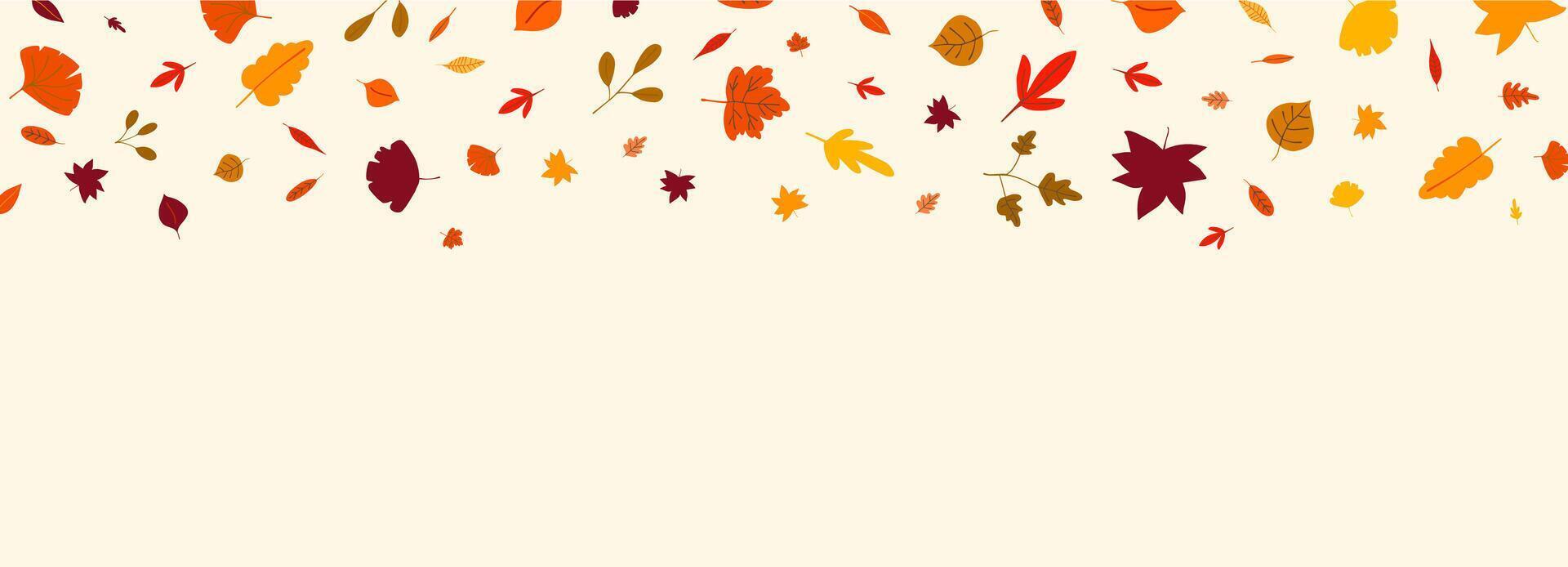 Autumn background with falling leaves in the wind. Fall thanksgiving banner frame border design Pro Vector