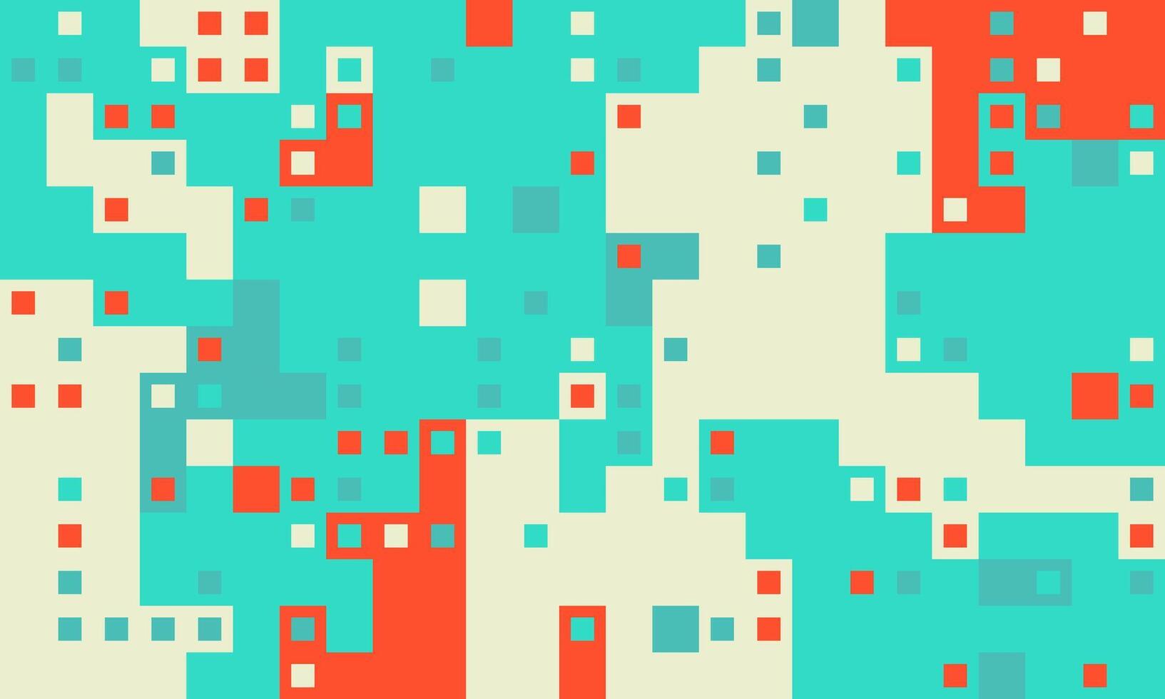 Abstract pixel art background. Vibrant teal, coral, and cream squares create a dynamic, modern design. Pro Vector