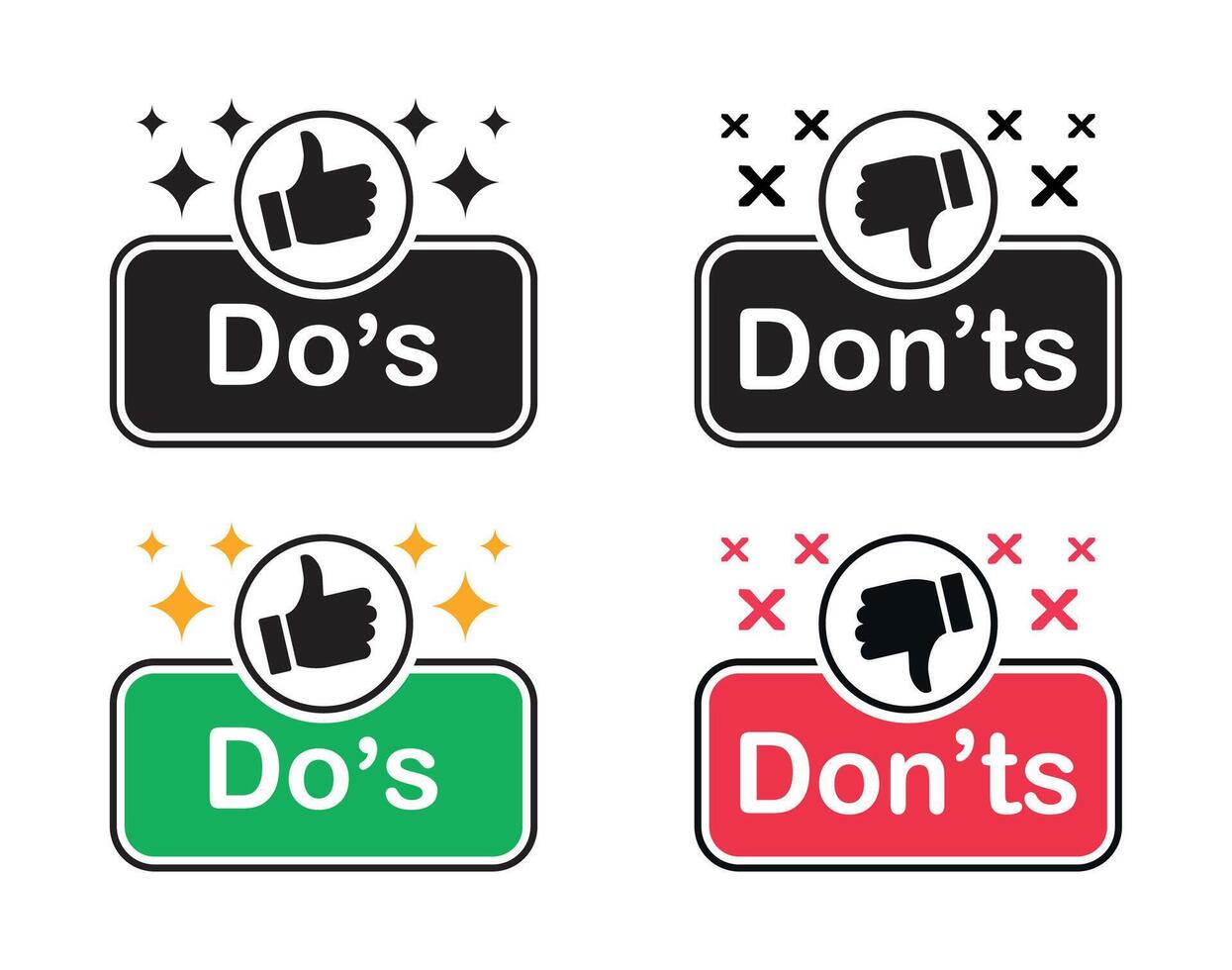 Do and dont icon set - Thumbs up and thumbs down design for instruction, guide, and rules Pro Vector
