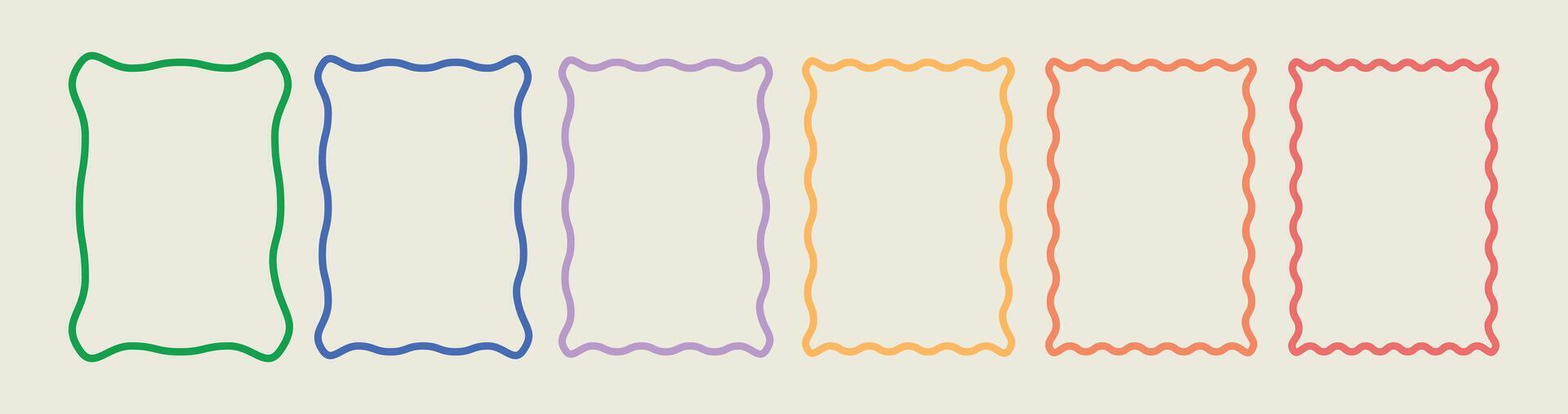 Zigzag wavy edge rectangle frame set. Jagged geometric border shapes for template, sticker, and social media design Pro Vector
