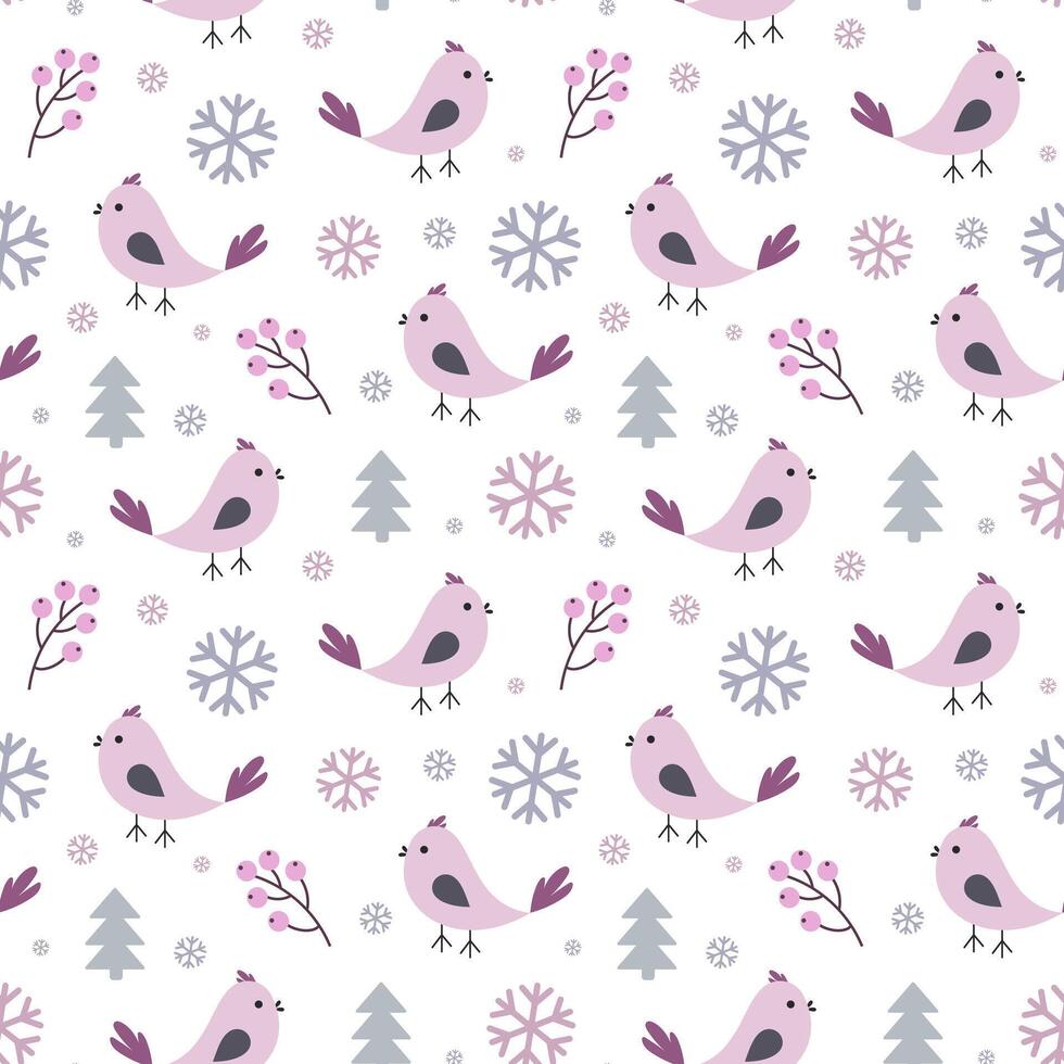 Seamless pattern with a bird, snowflake, and a branch with berries. illustration Pro Vector