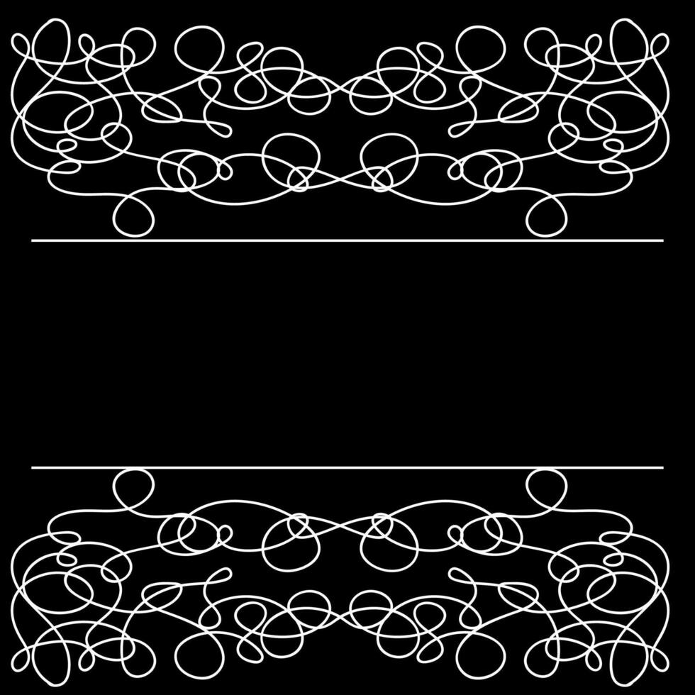 Abstract white doodle style frame for lettering drawn with one line on black background Pro Vector
