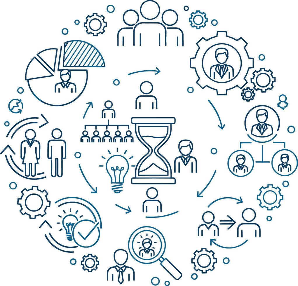 Business team collaborating in a circular flow brainstorming ideas and managing time effectively to achieve success in a dynamic work envi vector