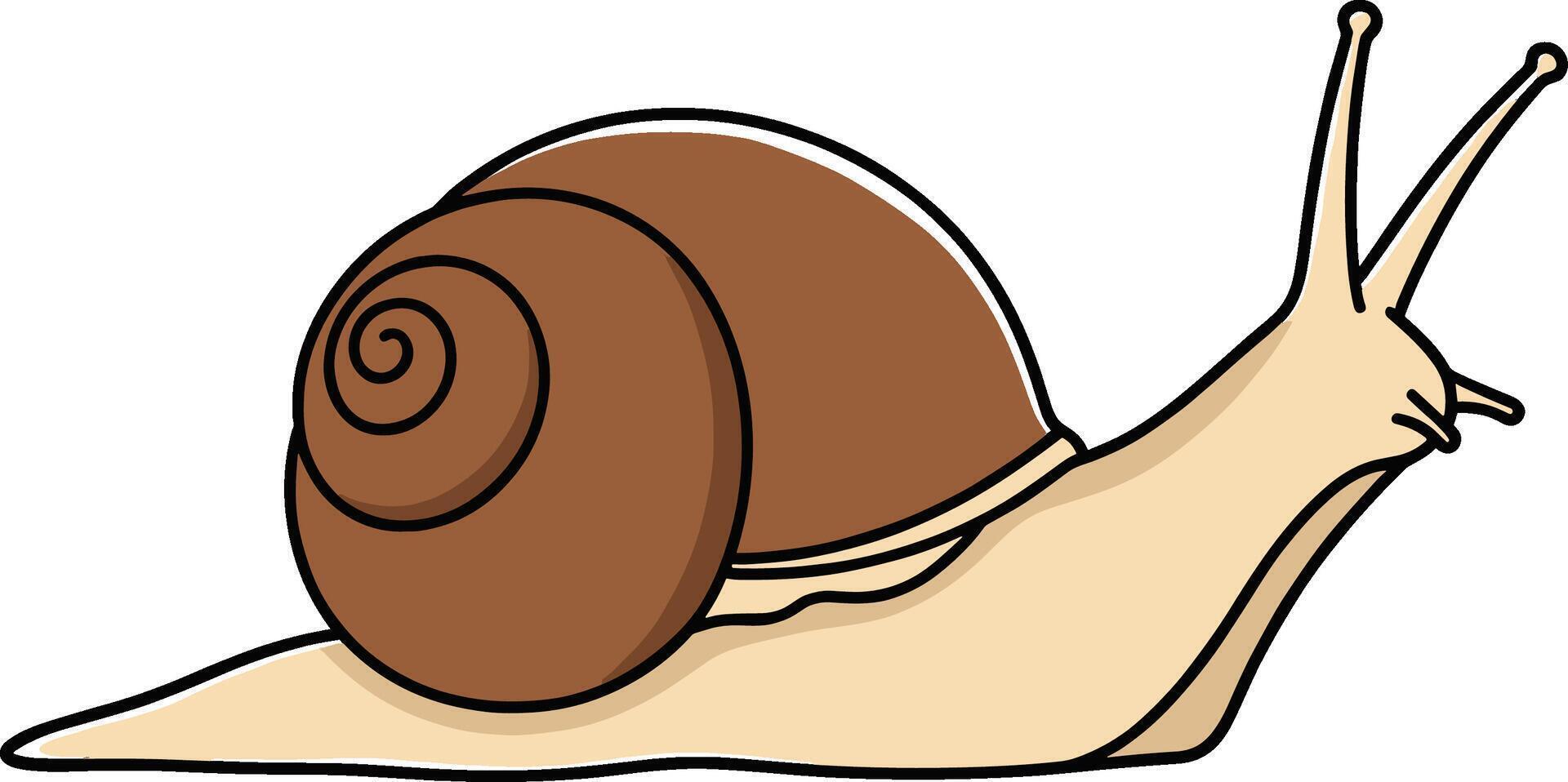 Cartoon snail slowly crawling on a white surface showcasing its shell and antennae conveying a sense of calmness and natures slow pace Pro Vector