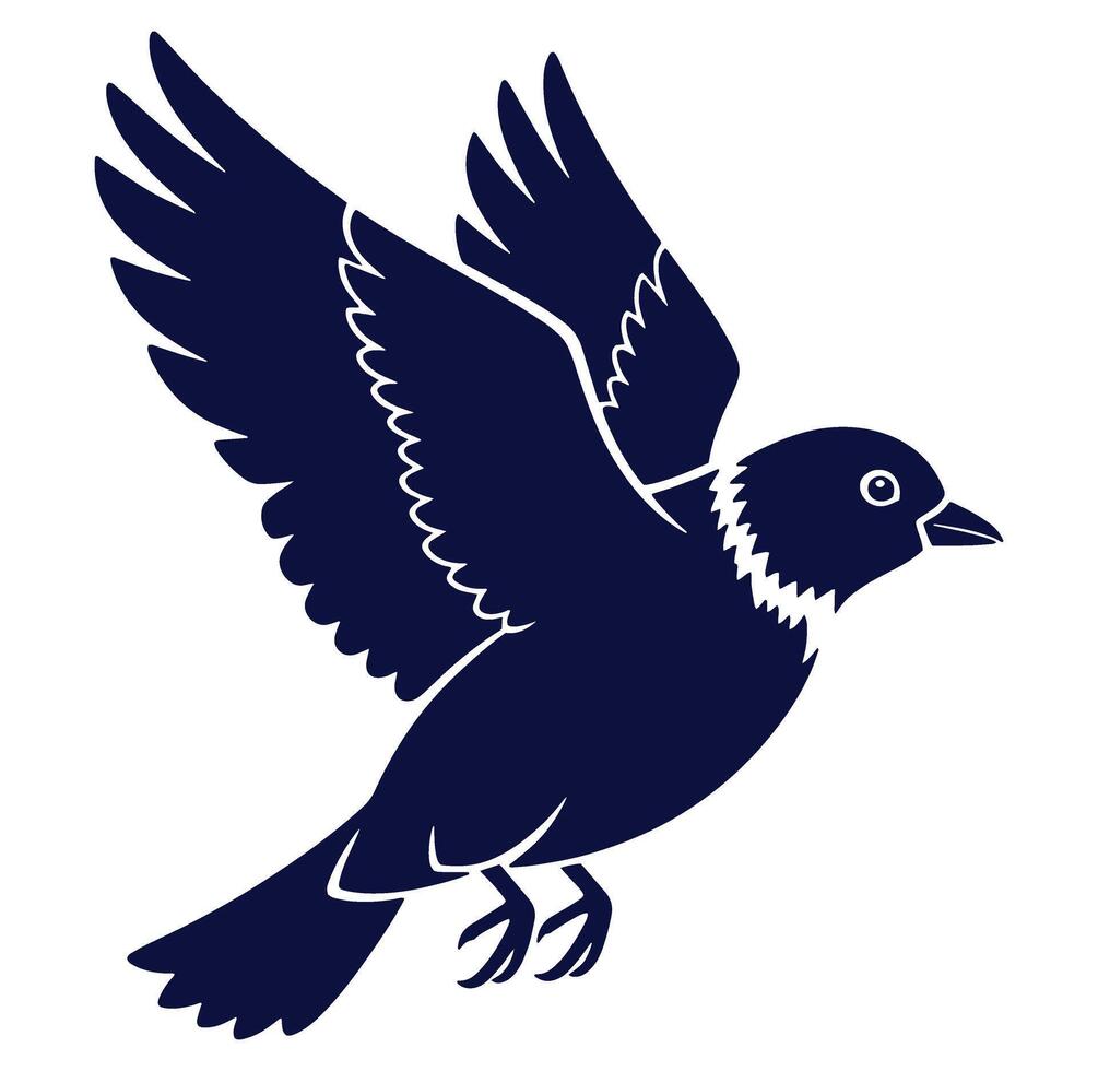 Elegant silhouette of a bird in flight showing expanded wings isolated on white background Pro Vector