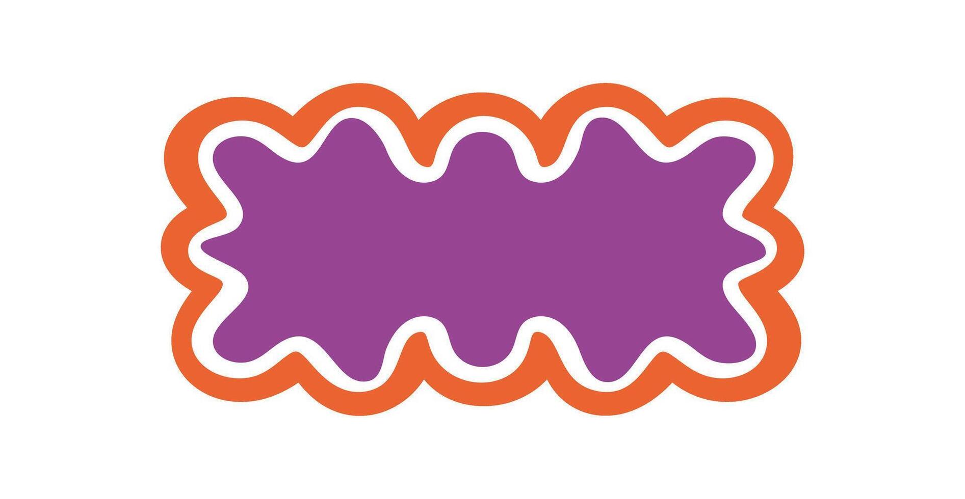 Groovy wavy rectangle frame with funky retro border and cartoon shape in purple and orange. Groovy y2k background graphic border, playful cartoon element for creative pop style projects. Pro Vector