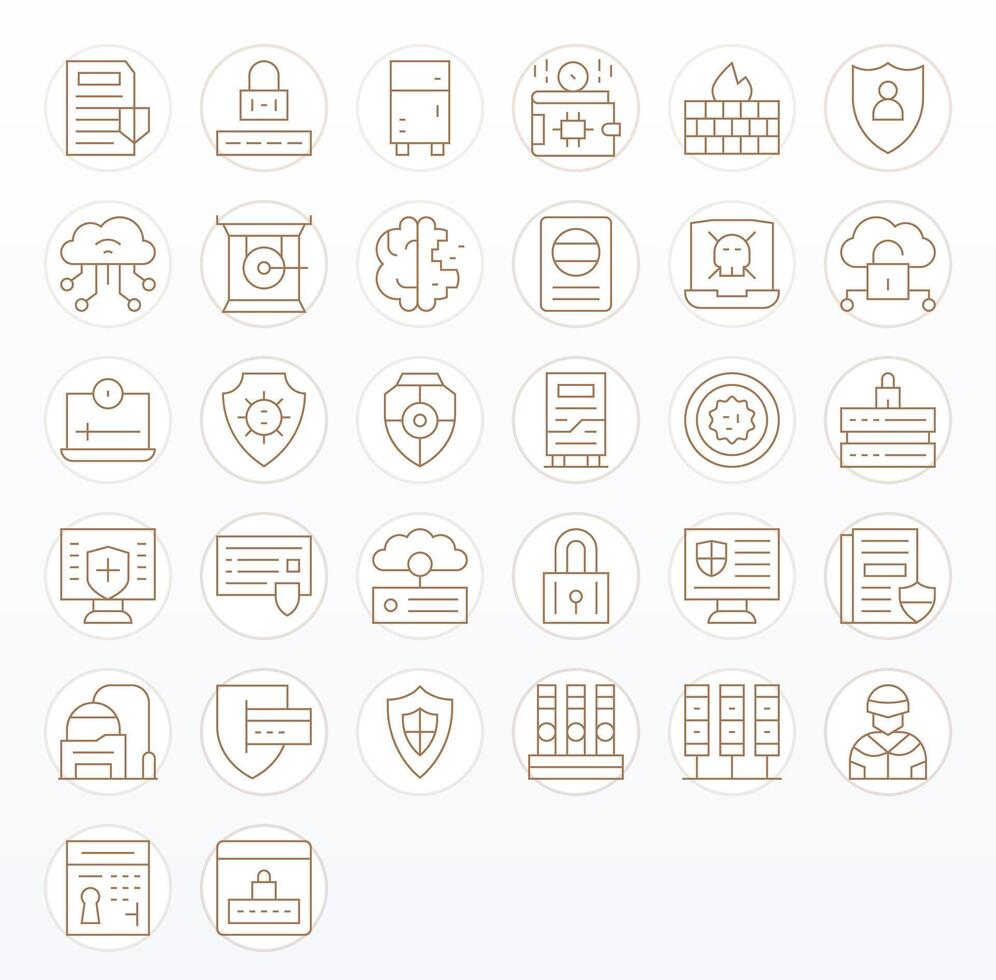 Cybersecurity Complete Package with 32 Retina Ready Thin Line Pixel Optimized Icons Free Vector