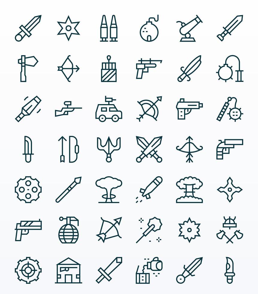 Weapon Icon Set with 42 Regular Line 256x256 Display Perfect Graphics Free Vector