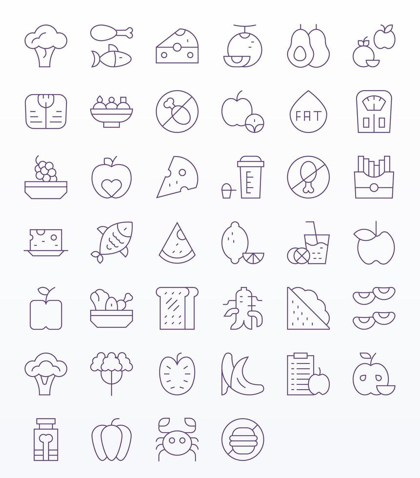 40 High Resolution Icons for Diet in Detail Enhanced Thin Line Format Free Vector