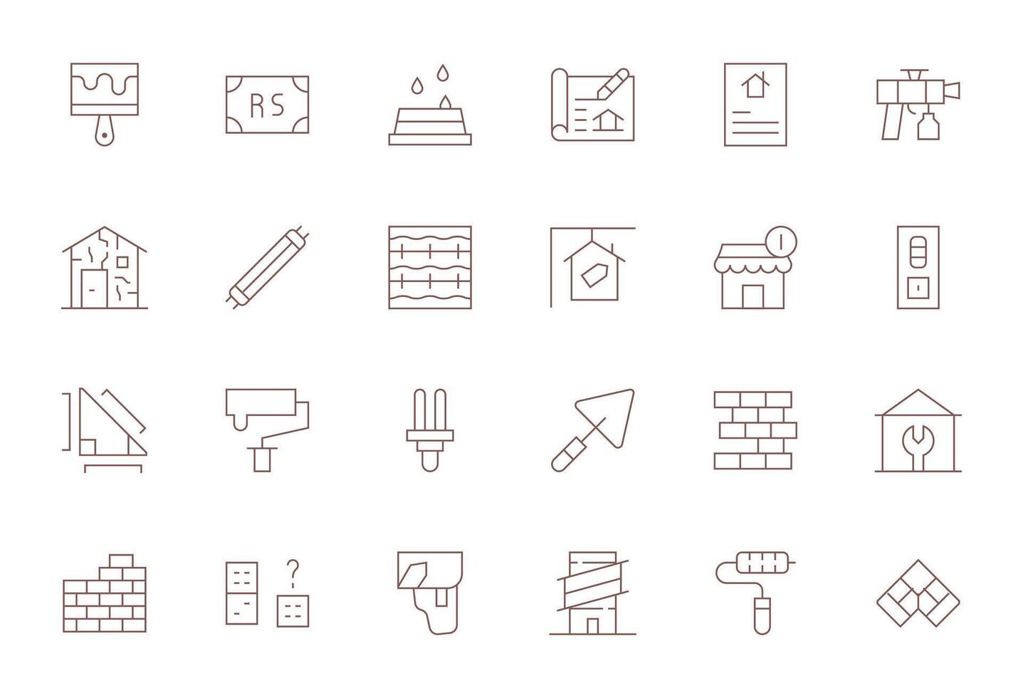 Renovation Comprehensive Bundle with 24 Editable Thin Line High Resolution Icons Free Vector