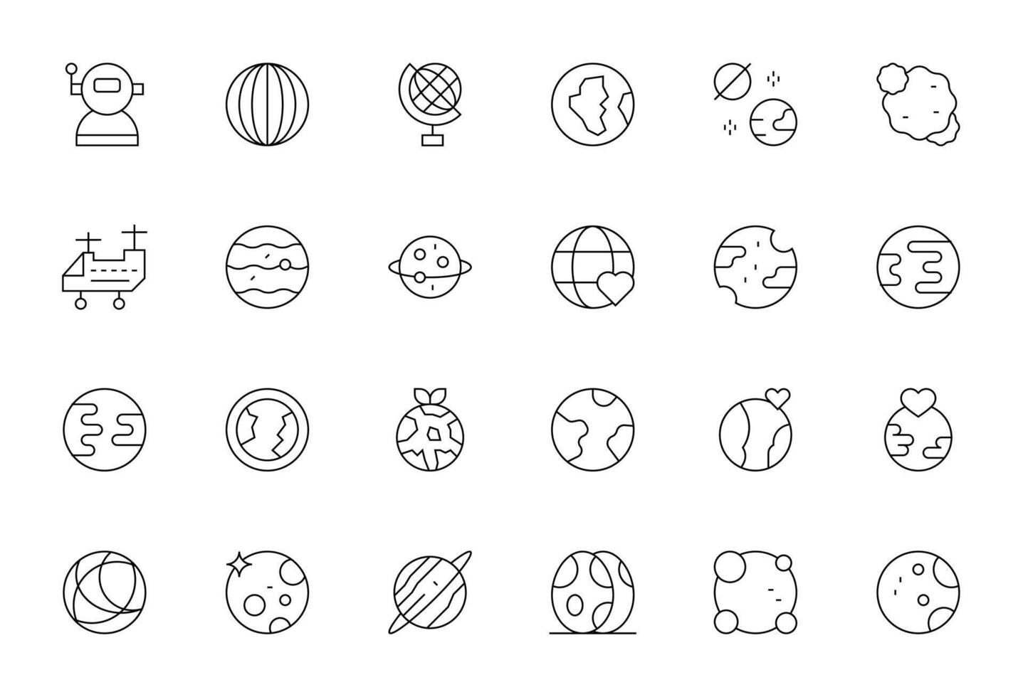 24 Thin Line Icons for Planet in crisp 256x256 PIXEL Perfect resolution Free Vector