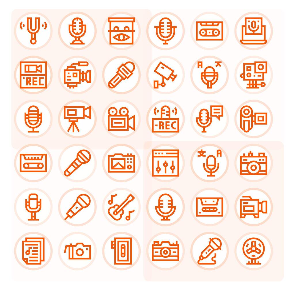 Recording Icon Library with 36 Bold Line High Resolution Pixel Optimized Designs vector