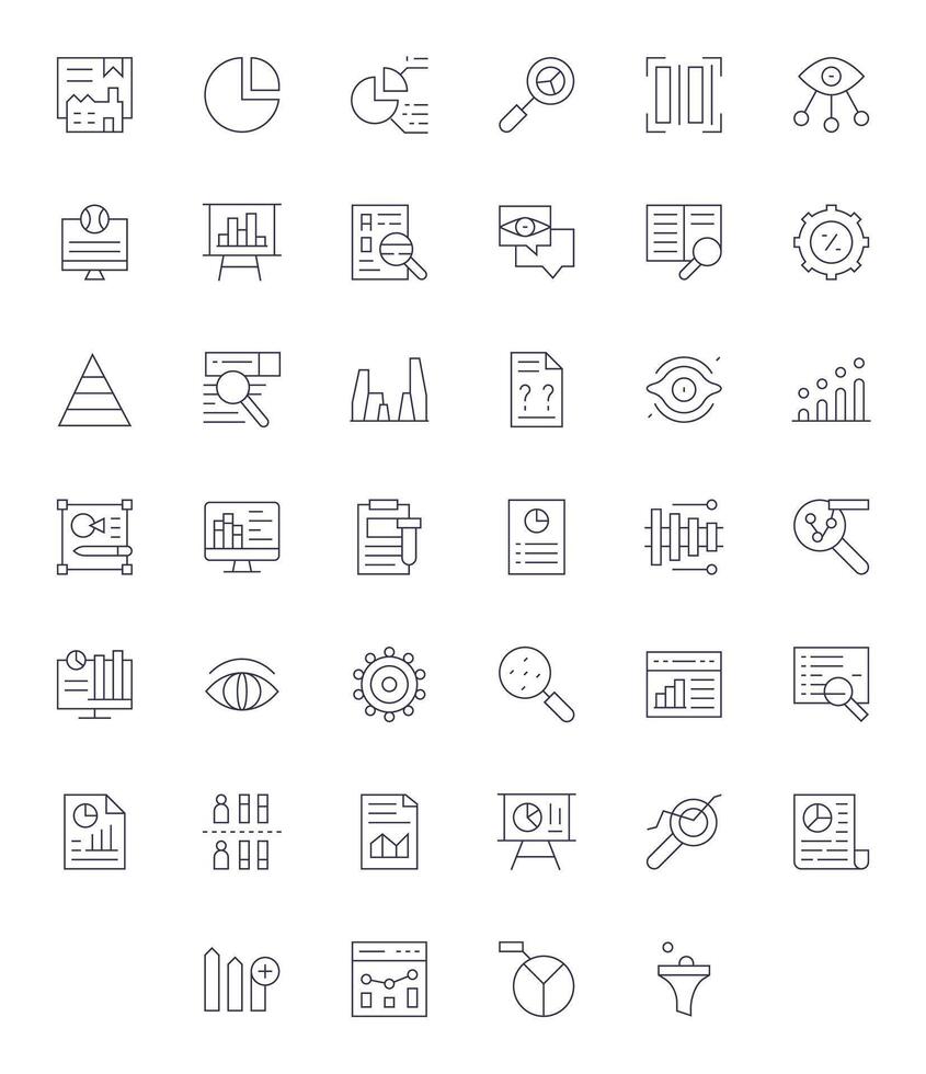 40 Pixel Aligned Icons themed around Data Analysis in 256x256 Thin Line format vector