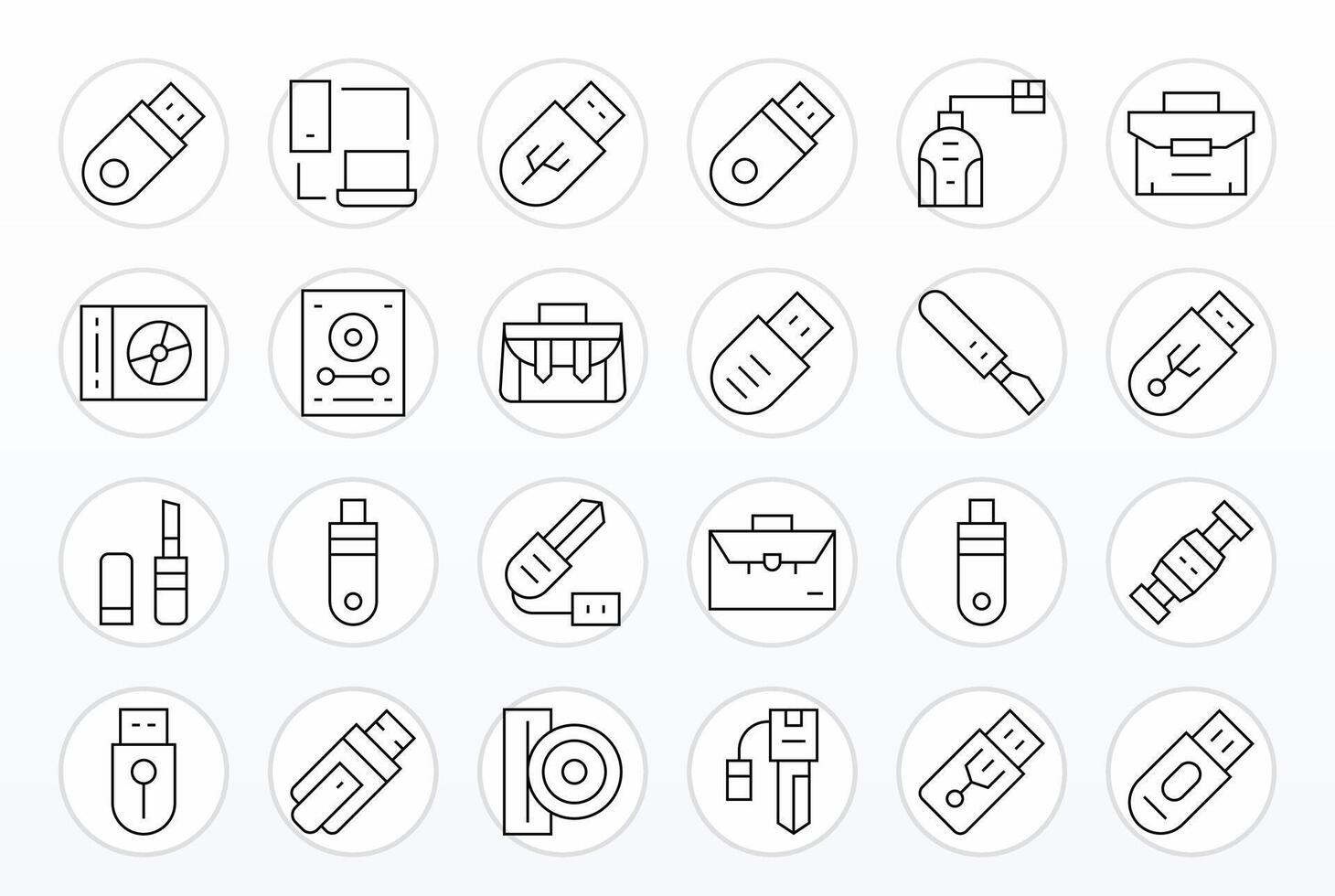 Portable Storage Icon Library with 24 Thin Line High Resolution Pixel Optimized Designs vector