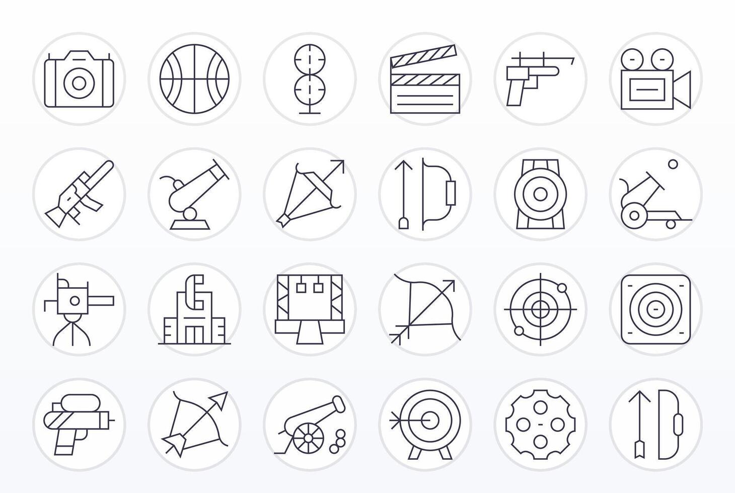 24 Icons for Shooting featuring Retina Ready Pixel Optimized Thin Line Graphics Free Vector