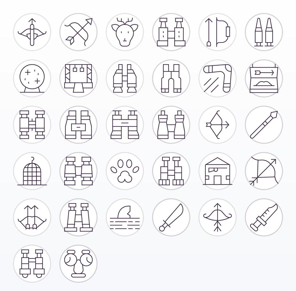 32 128x128 Icons for Hunting in Grid Fitted Thin Line Format vector