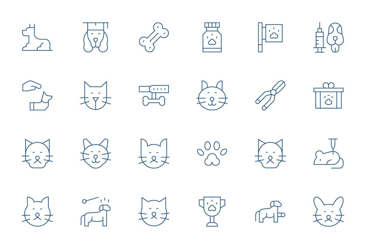 24 64x64 Thin Line Icons optimized for Veterinary Pixel Aligned display vector