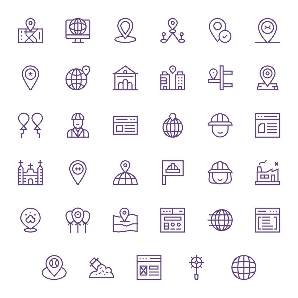Regular Line Grid Fitted Icons from Site Set with 35 High Resolution Icons Free Vector