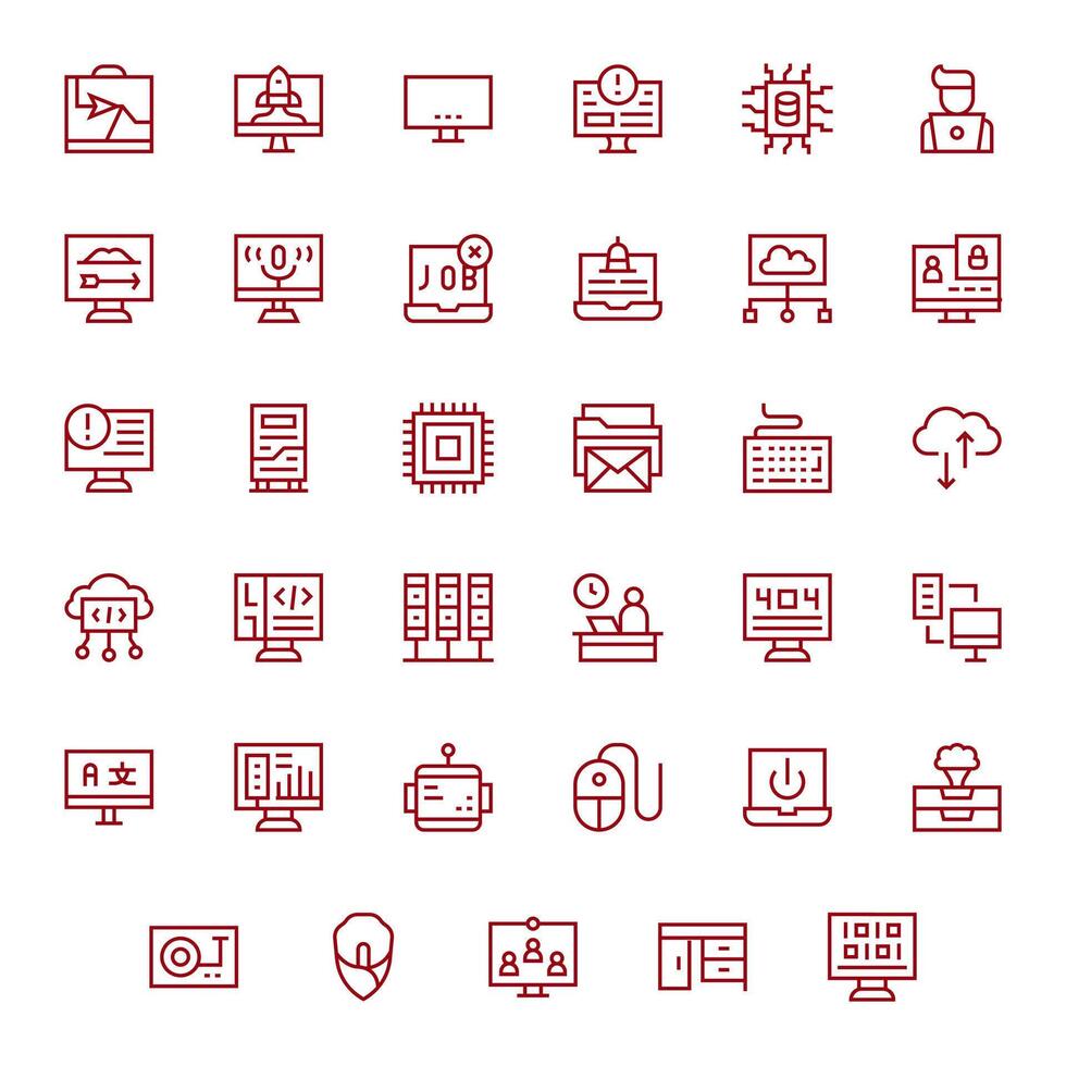Computer featuring 35 High Resolution Icons in Regular Line Design vector