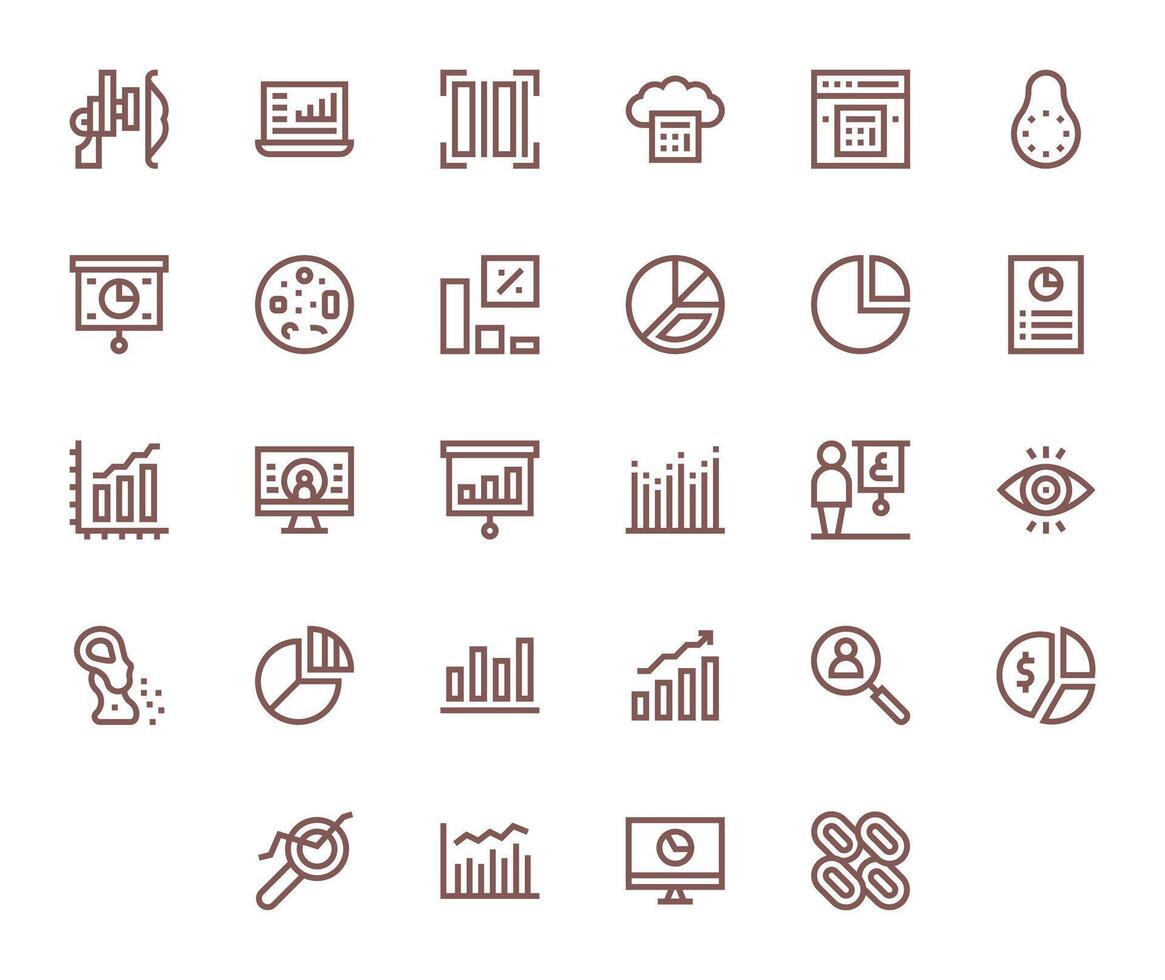 28 High Resolution Grid Fitted Icons for Data Visualization in Bold Line Theme Free Vector