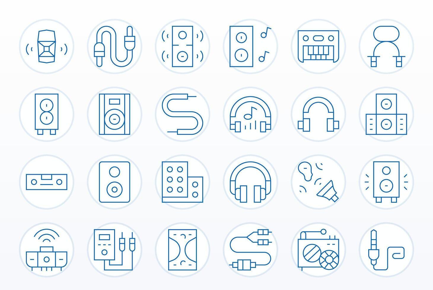 Stereo Icon Toolkit featuring 24 Editable 128x128 Thin Line elements vector