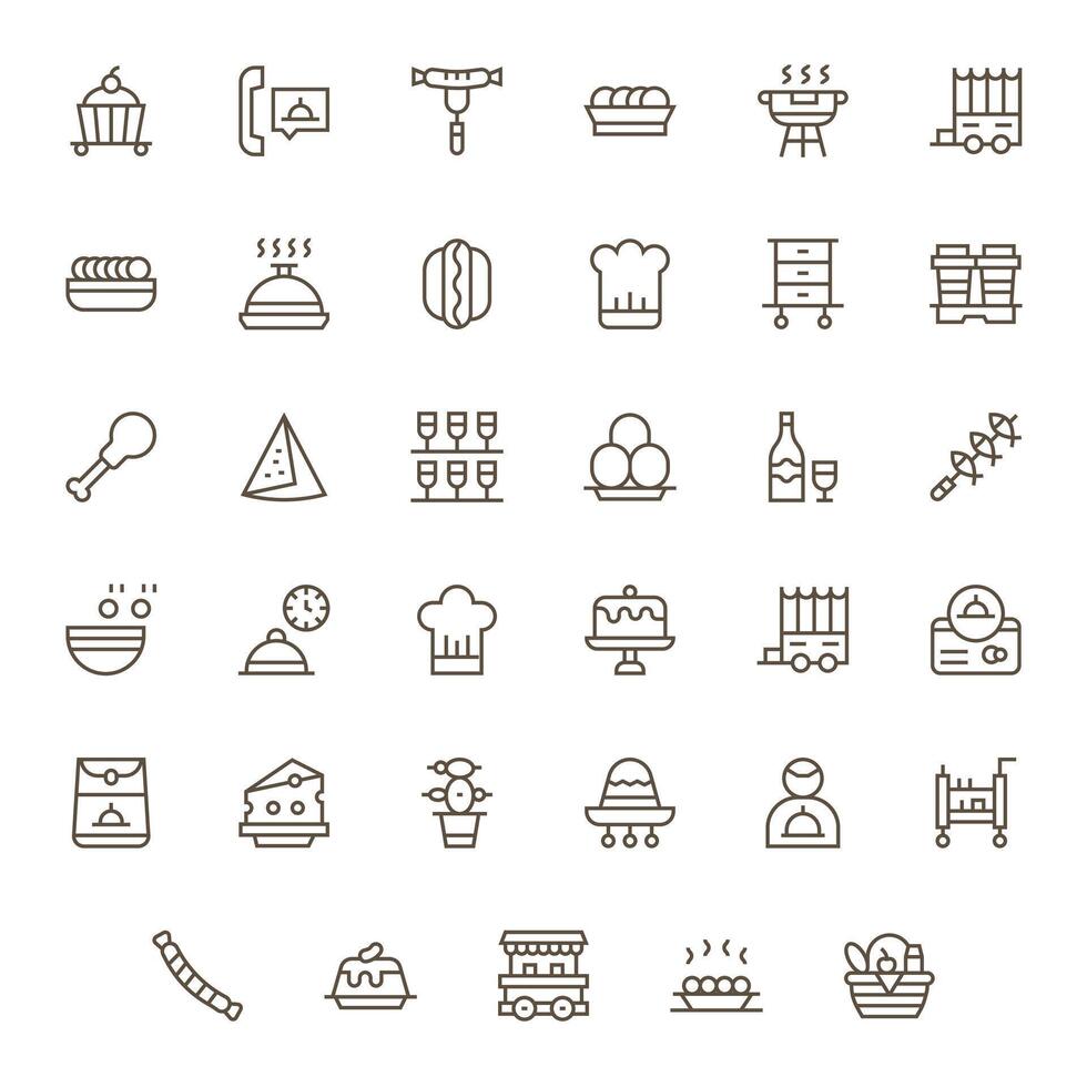 35 Regular Line Icons designed for Catering in 256x256 Grid Fitted format Free Vector