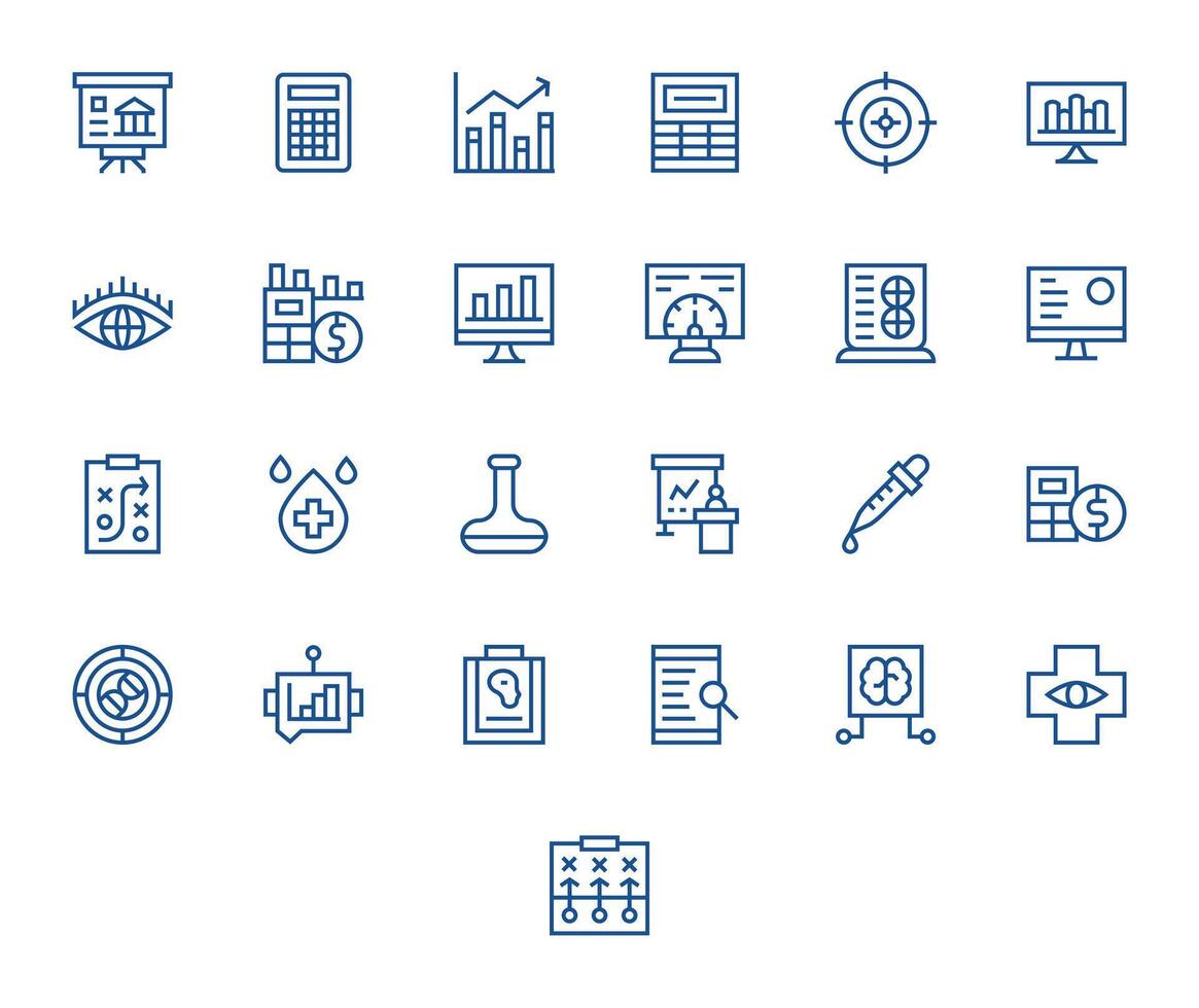 25 Icons for Analysis featuring 128x128 Display Perfect Regular Line Graphics vector